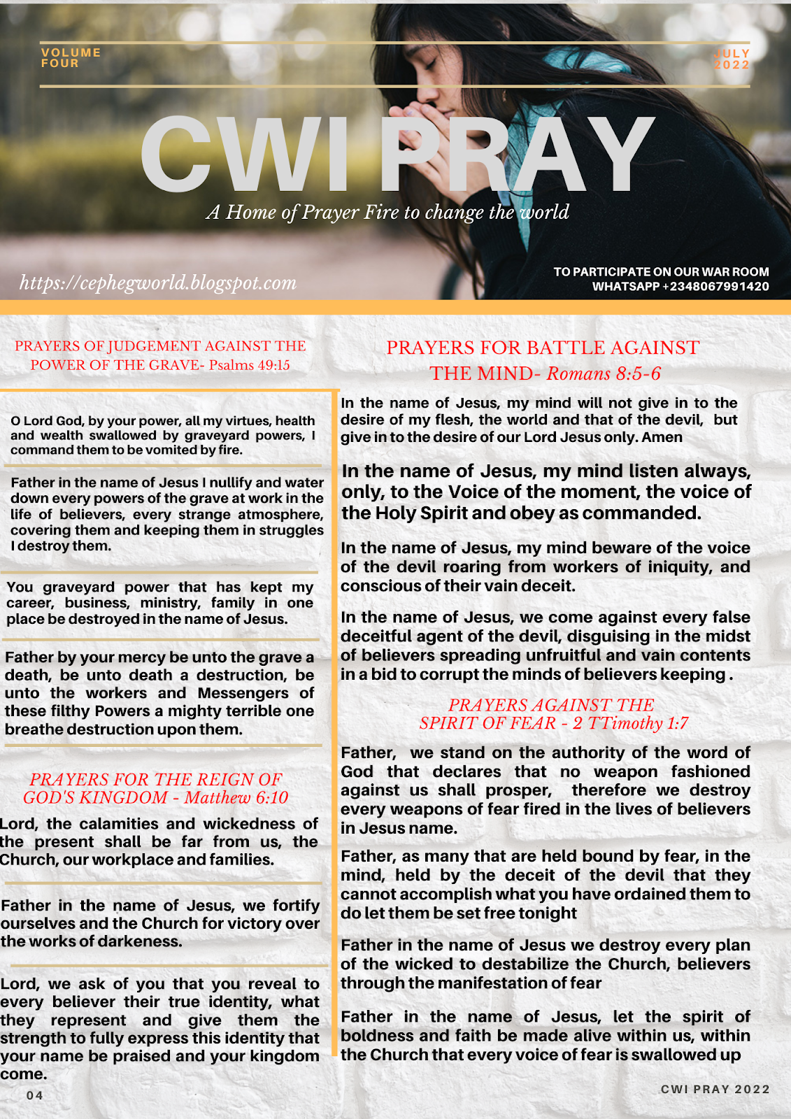 √. Father, we stand on the authority of the word of God that declares that no weapon fashioned against us shall prosper, therefore we destroy every weapons of fear fired in the lives of believers in Jesus name.